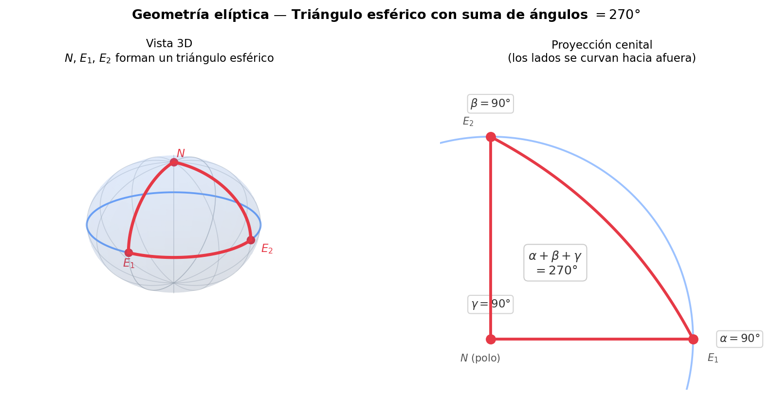 Triángulo esférico con suma de ángulos 270°